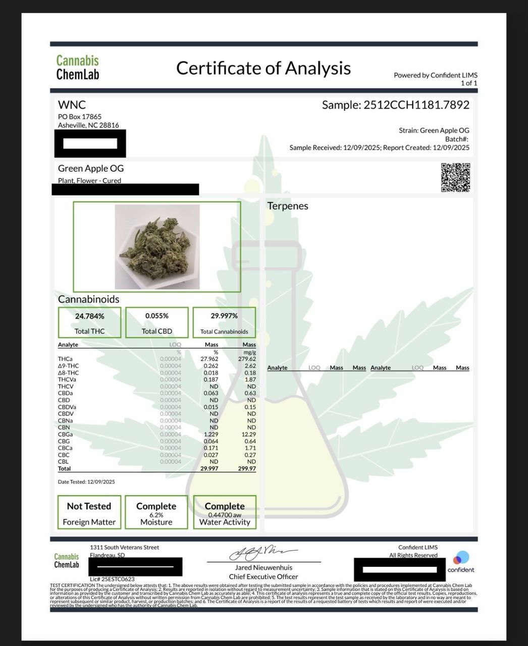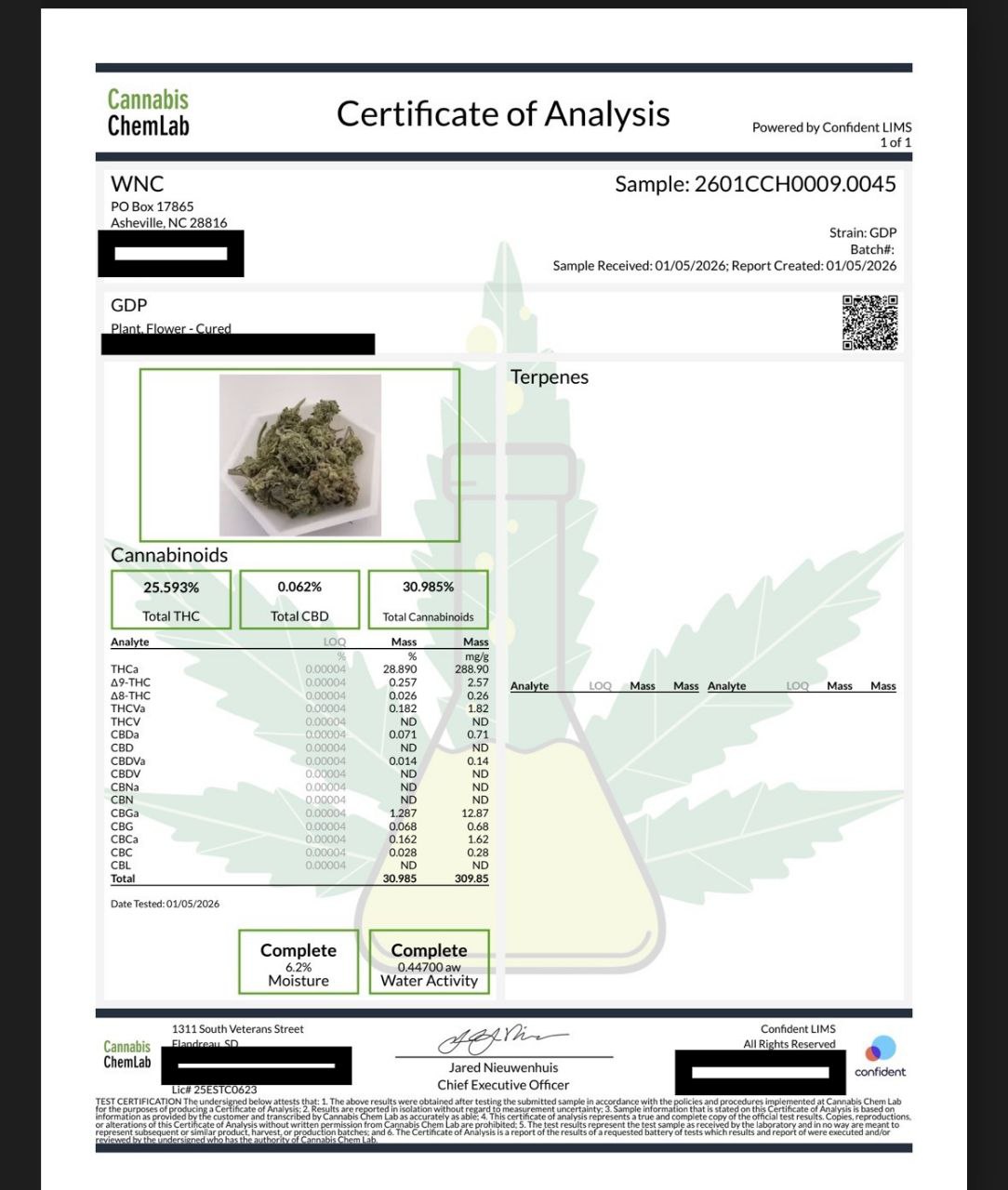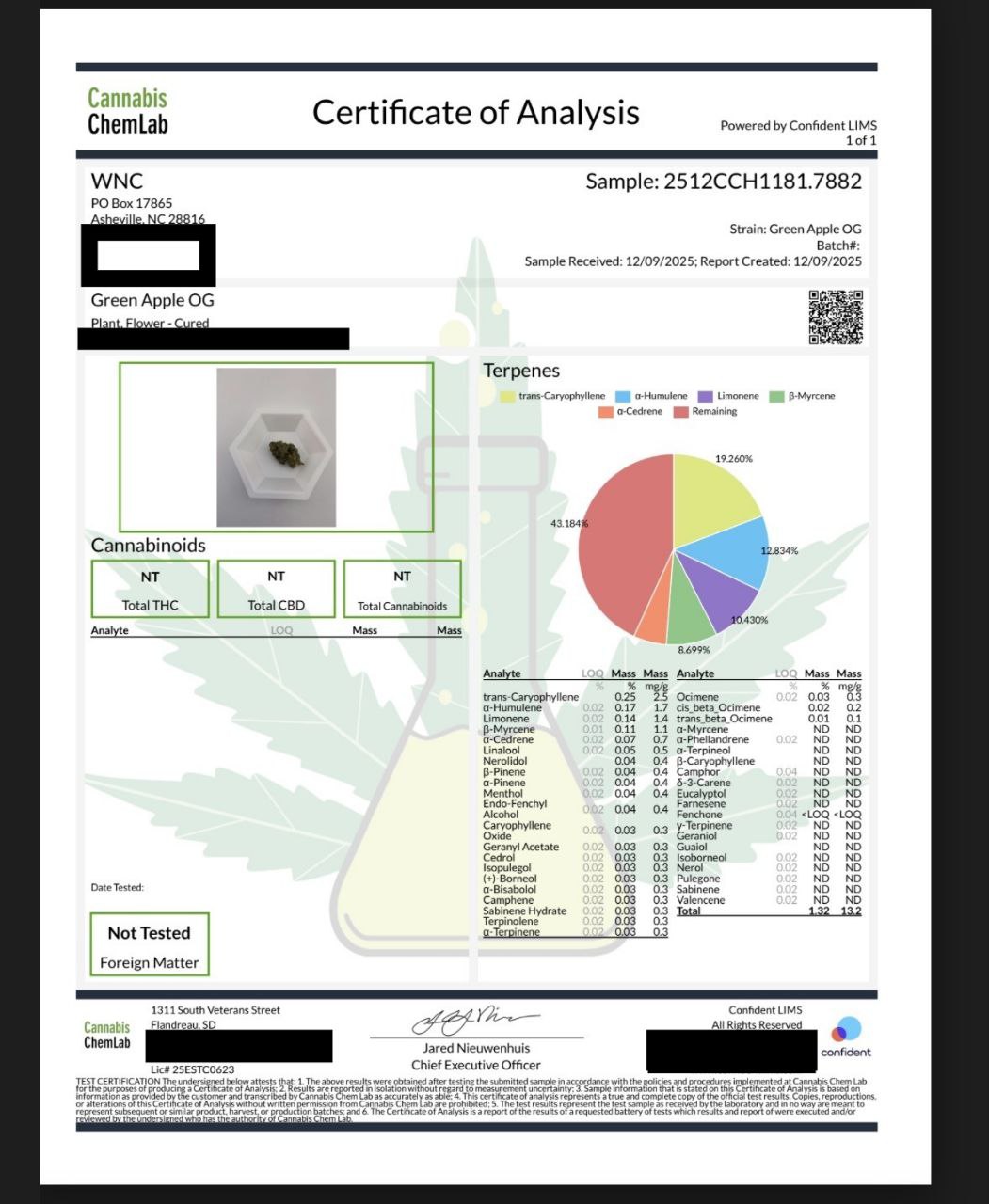 Browse by batch number or strain. Each PDF includes cannabinoid profile, terpene analysis, and certification of compliance with federal and state regulations (less than 0.3% Delta-9 THC by dry weight).
